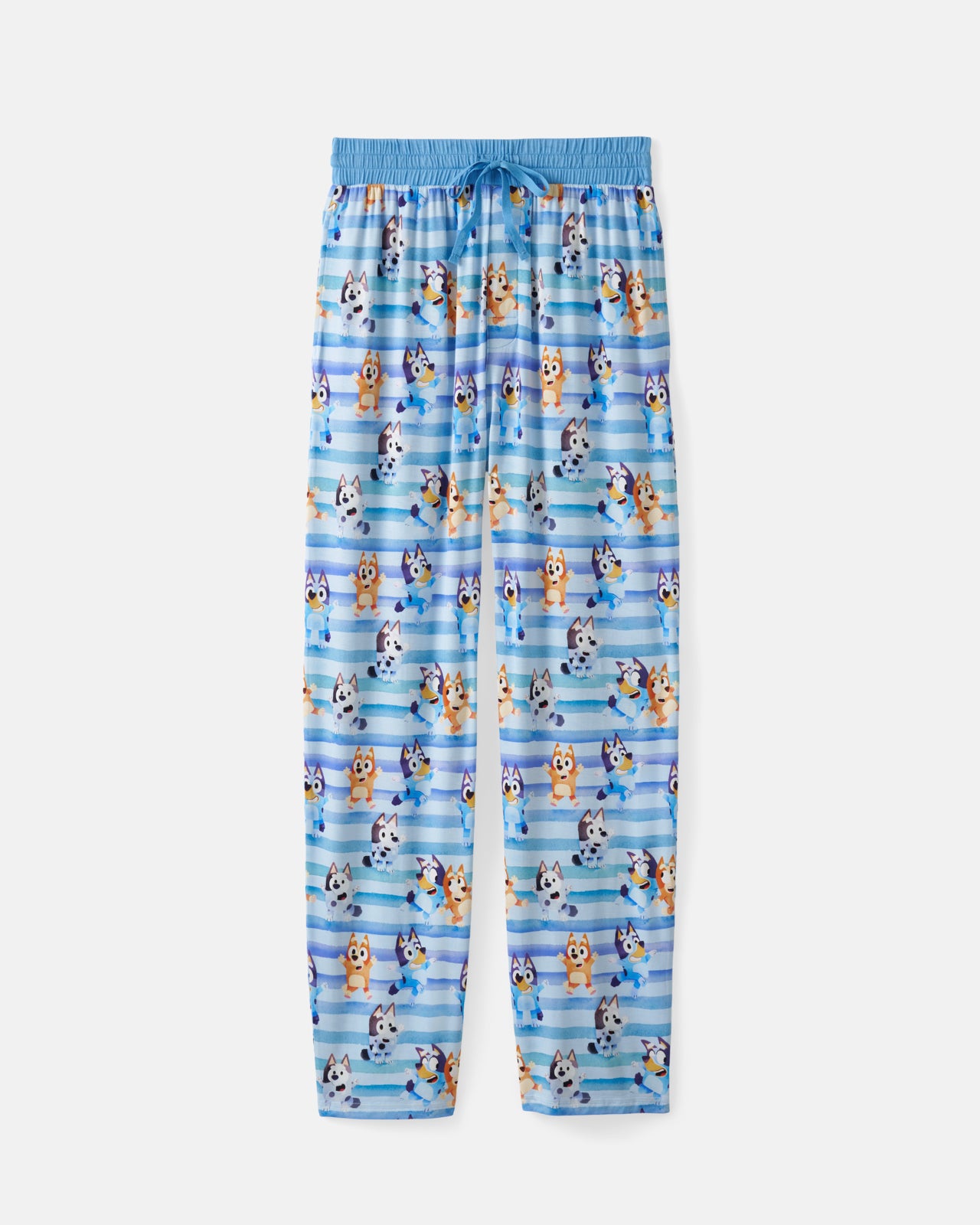 Grown-ups get to dance, too! The Bluey Dance All Day Men's Pajama Pants feature Bluey, Bingo, and Muffin together on a blue striped watercolor-inspired print. Made from ultra-soft Lunaluxe® Bamboo, these men's bamboo pajama pants have deep side pockets and a relaxed fit. Pair with the matching top to complete the set!