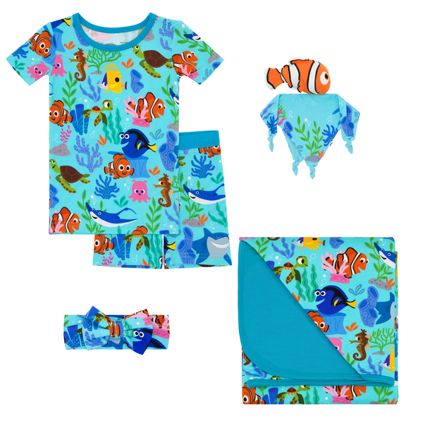 Click to see full screen - Flat lay of the Disney Nemo's Reef Two-Piece Short Sleeve & Shorts Pajama Set