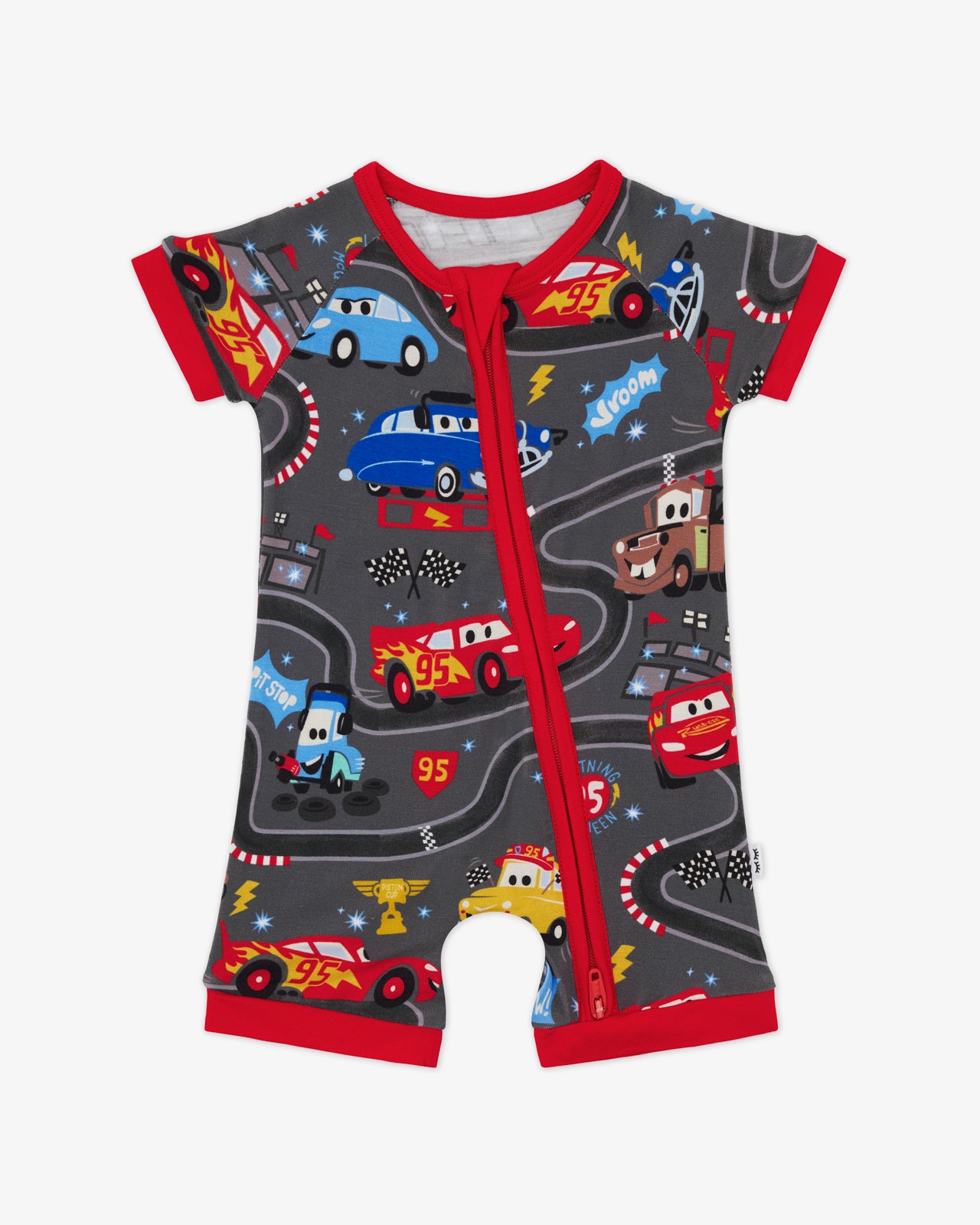 Your little one will be racing to bed in these Disney & Pixar Cars bamboo baby pajamas! Made from our buttery soft Lunaluxe® Bamboo, this Shorty Zippy is gentle on sensitive skin and perfect for warmer weather. With a double zipper for quick changes, bedtime is as smooth as a pit stop. Featuring Pixar’s Lightning McQueen, Mater, Luigi, and more of your fave characters. Perfect for fueling sweet dreams of racing adventures!