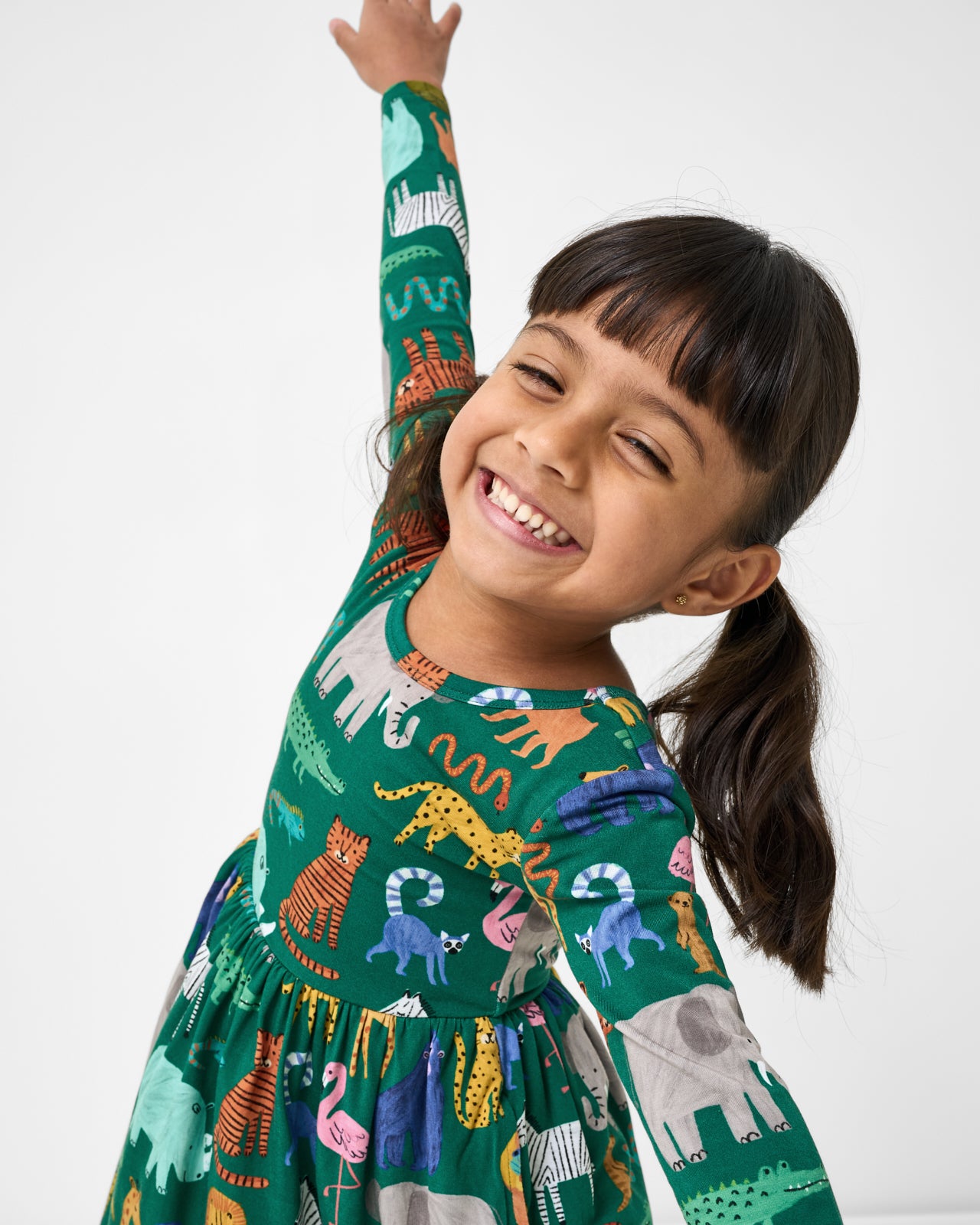 This dress gets evwryday wear in our house!! Fits like a 5T and has room to stretch.
