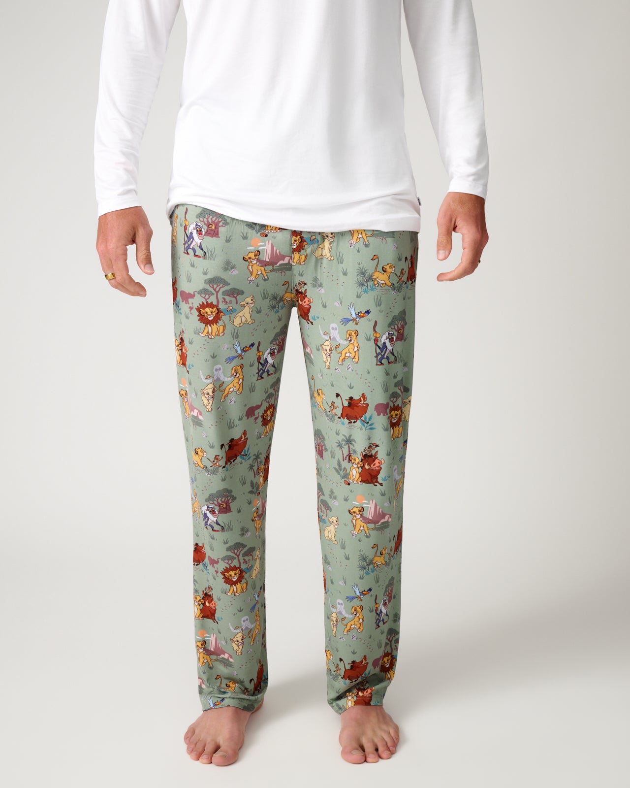 • Man wearing the Disney Simba's Safari Men's Long Sleeve Pajama Top