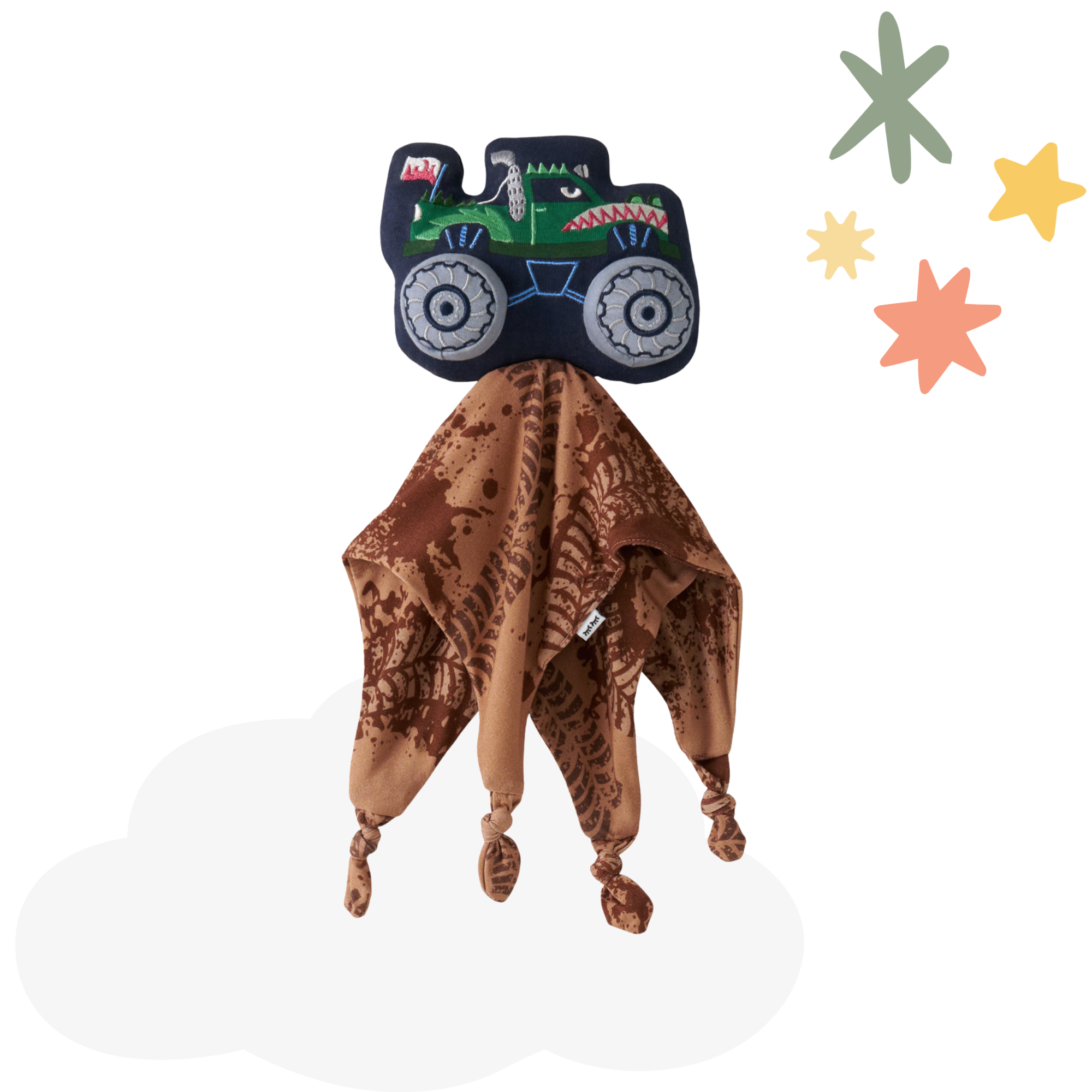 Whether it’s playtime or snuggle time, Cammie the Chameleon Sleepyhead Lovey blends right in! Featuring a plush chameleon pal up top and a critter-packed security blanket below, it perfectly matches their Jungle Jam pajamas for wild adventures and comforting cuddles. Made from our signature Lunaluxe® Bamboo, this jungle buddy is oh-so soft and gentle on sensitive skin. Whether they’re curling up or setting off on a crawling exploration, this cuddly companion is always close by.