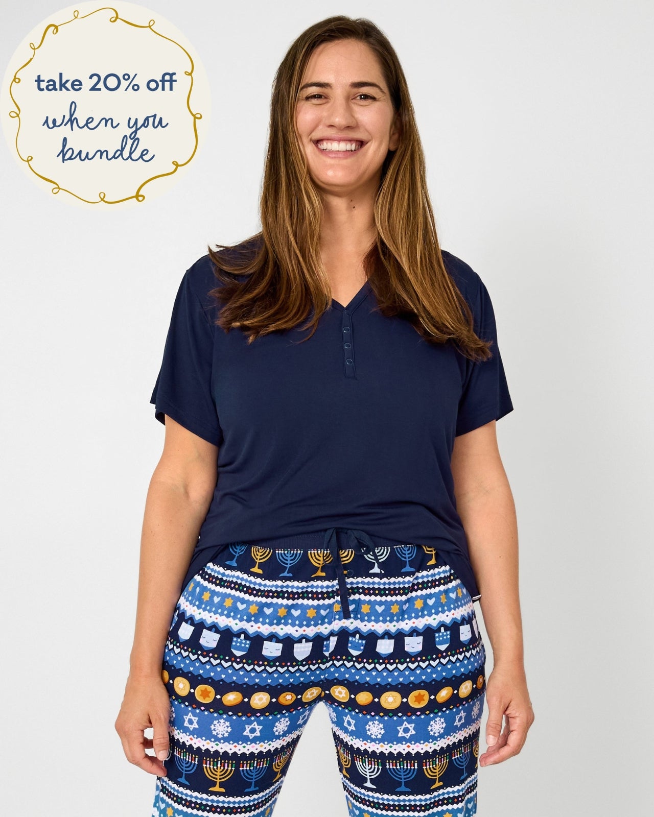 • Woman wearing the Hanukkah Fair Isle Women's Pajama Pants