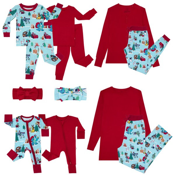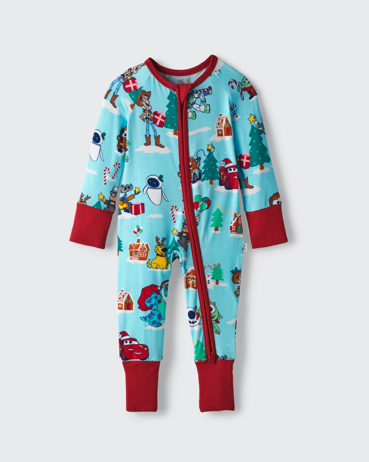 Holiday movie nights just got merrier! The Pixar Christmas Village Zippy features beloved characters celebrating the season. Made from buttery soft Lunaluxe® Bamboo that's gentle on sensitive skin, this bamboo baby sleeper keeps them cozy with fold-over mittens, convertible foot cuffs, and an easy double zipper. Perfect for family matching!