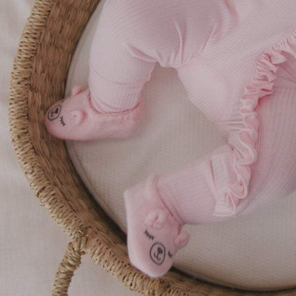 the coziest booties for your little cub. made from soft Soluxe® Bamboo, with adorable bear details that make every stroll together extra sweet. the photos will be too cute not to post.
