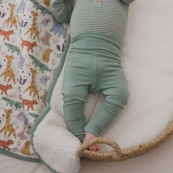 the comfiest choice for those first outings together. made from gentle Soluxe® Bamboo, with fold-over footcuffs for tiny toes and an elastic waistband that's soft on sensitive bellies. the sweetest prints and hues turn every moment into a memory.