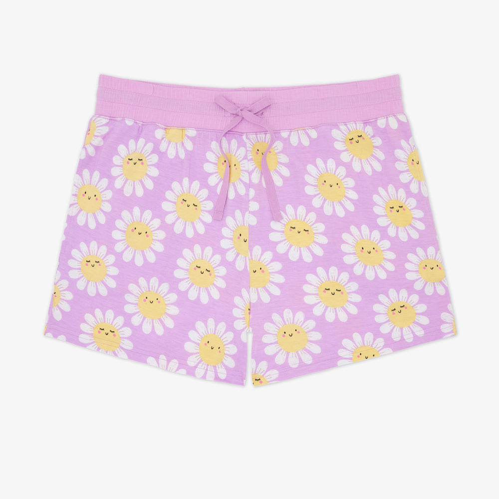 Standing woman wearing the Flower Power Women's Pajama Shorts and matching top