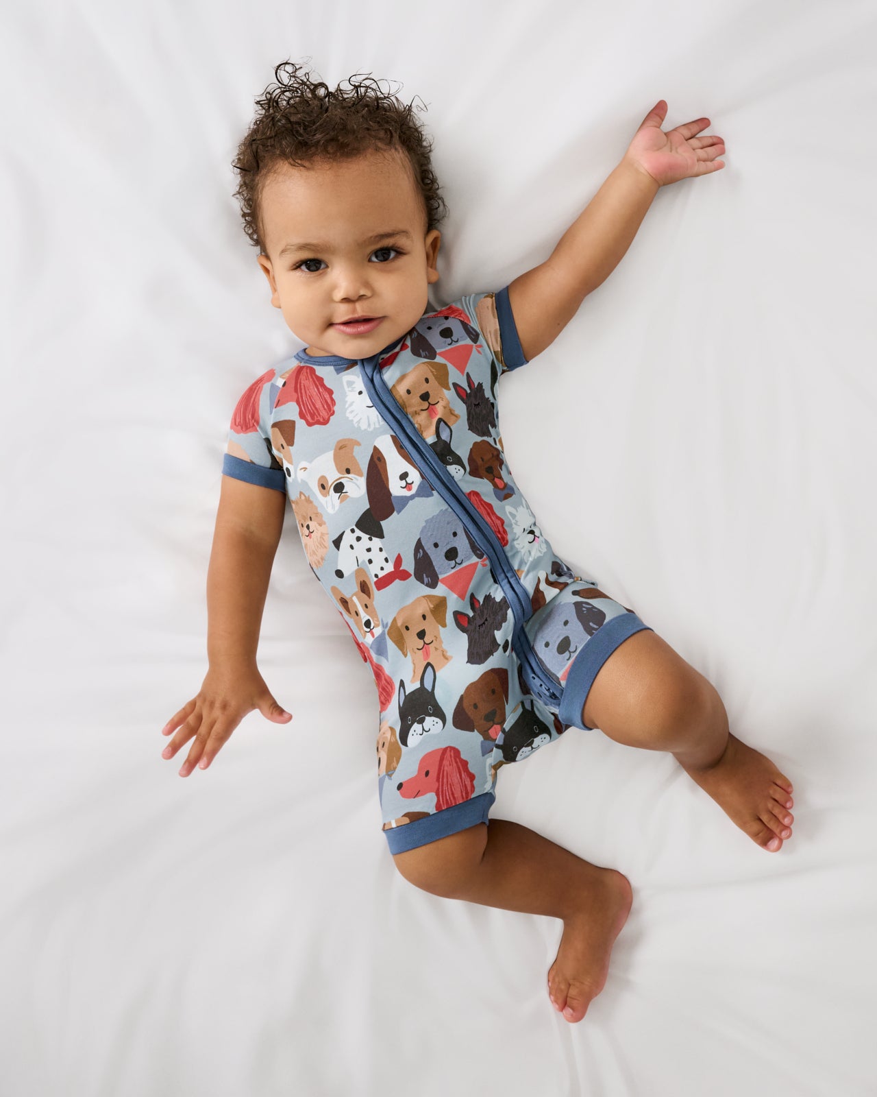 Snuggle up with playful pups! The Gray Puppy Parade Shorty Zippy features an adorable mix of dogs with cute accessories, like bows and bandanas! Made from ultra-soft Lunaluxe® Bamboo, this breathable sleeper is gentle on sensitive skin and perfect for family matching. With a double zipper for easy changes, it’s convenient as can be. A must-have for dog lovers on warmer nights!