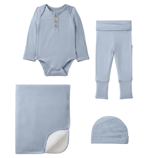 Precious memories just got even cuter. Our Light Fog Infant Beanie is made from super soft Soluxe® Bamboo that’s gentle on delicate newborn skin. Featuring a fold-over brim, it adjusts to little heads of all sizes. Made to mix and match, we love it paired with the Light Fog Stripe Henley Bodysuit and Fold-Over Legging!