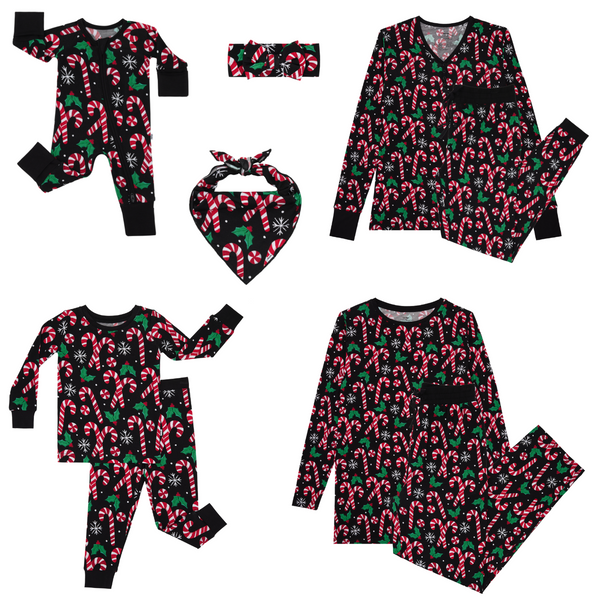 Peppermint perfection. The Merry Mints Women's Pajama Pants feature bold candy canes, holly, and snowflakes on custom-milled Lunaluxe® Bamboo. These women's bamboo pajama pants have deep side pockets and a comfy elastic waistband that's bump friendly. Pair with the matching top, then snag styles for the kiddos, too!