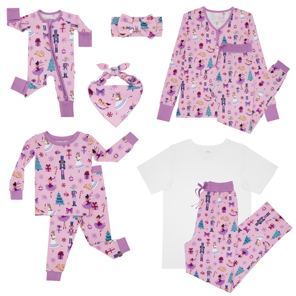 Let your furry friend in on the matchy fun! The Nutcracker Ballet Pet Bandana features Nutcracker dancers and details with a dreamy pink background on super-soft bamboo fabric. This adjustable pet bandana comes in two convenient sizes to fit most furry family members. Grab matching jammies and cue the card-worthy captures!