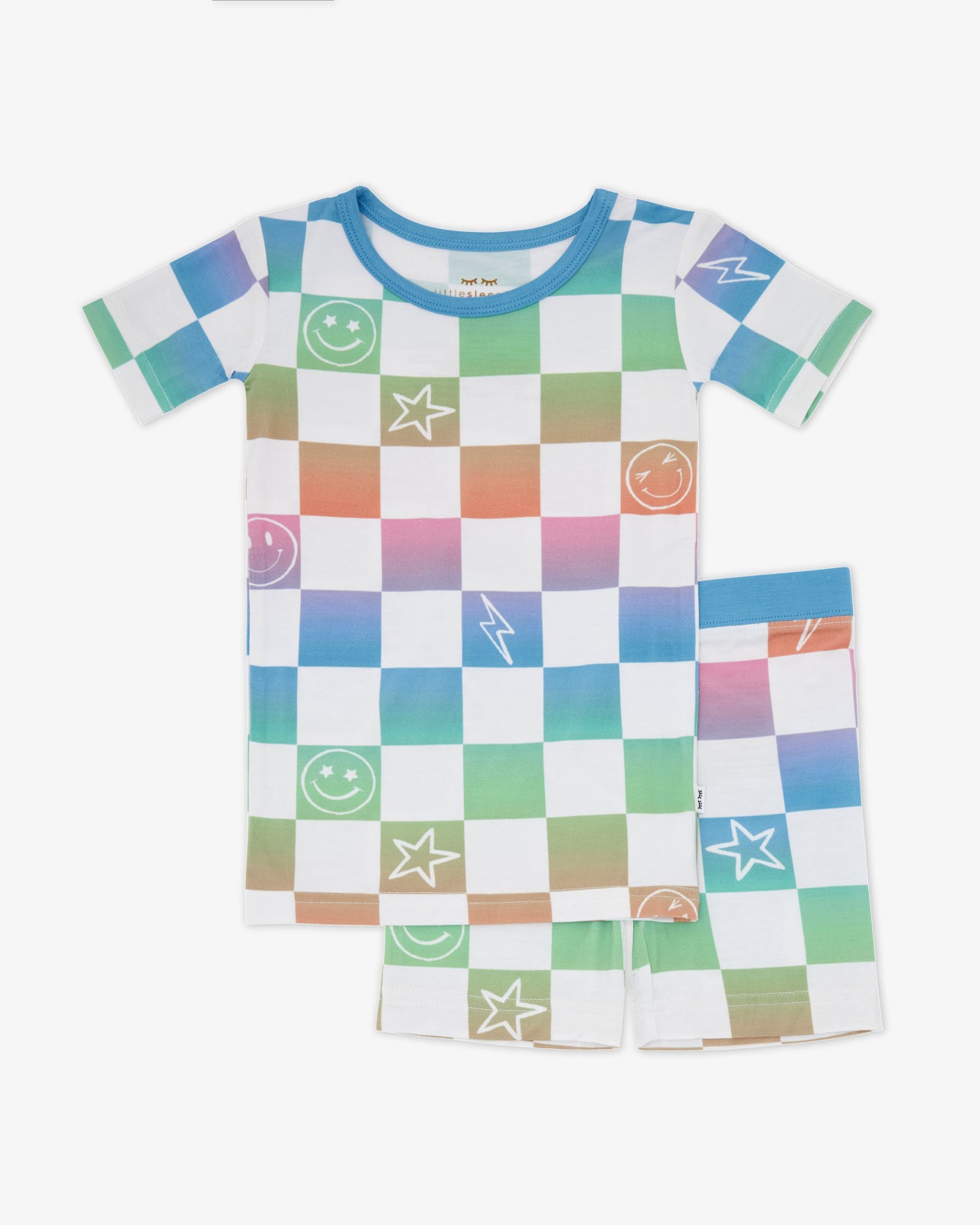 Ombre Cheery Checks Two-Piece Short Sleeve & Shorts Pajama Set product page