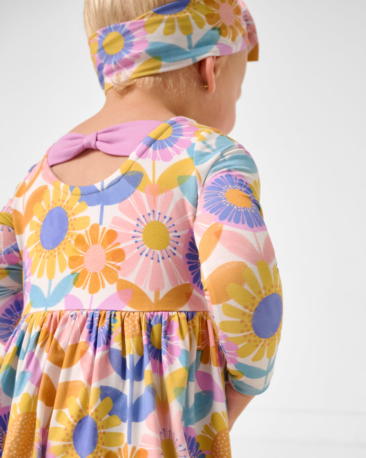 The twirl dresses are my new obsession. Easy, comfy, and adorable. The bow on the back is such a cute detail. The snap buttons are strong, no accidentally coming undone during the day.