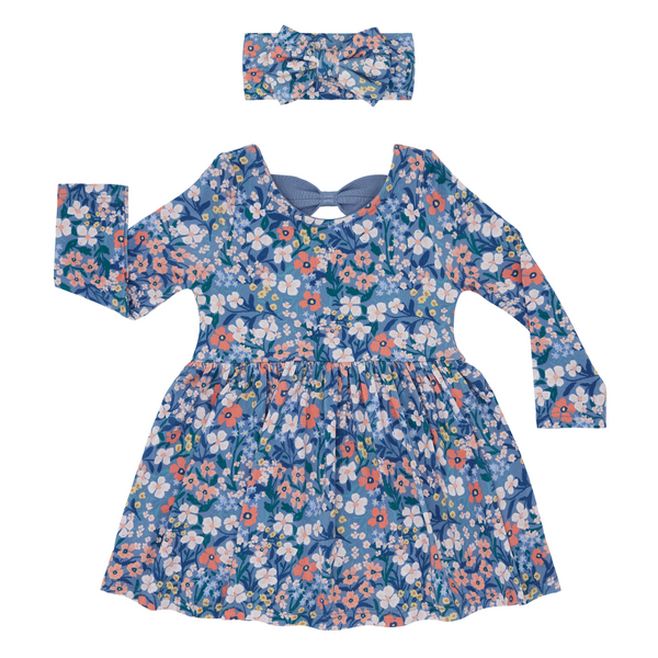 Petite Petals Bow Back Skater Dress with Bodysuit