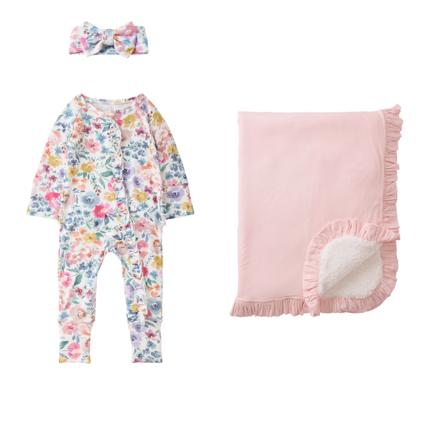the perfect snuggle setup for tummy time and beyond, thoughtfully designed for their most precious early days. made from buttery soft Lunaluxe® Bamboo, triple-layered with a bamboo sherpa backing and sweet ruffle edge details.