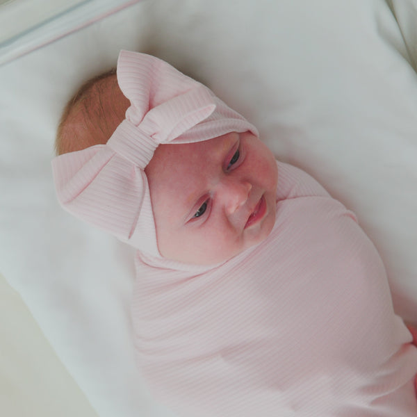 the best welcome home duo for life's sweetest gift. made from buttery soft Lunaluxe® Bamboo, with a matching bow headband for the cutest newborn photos.