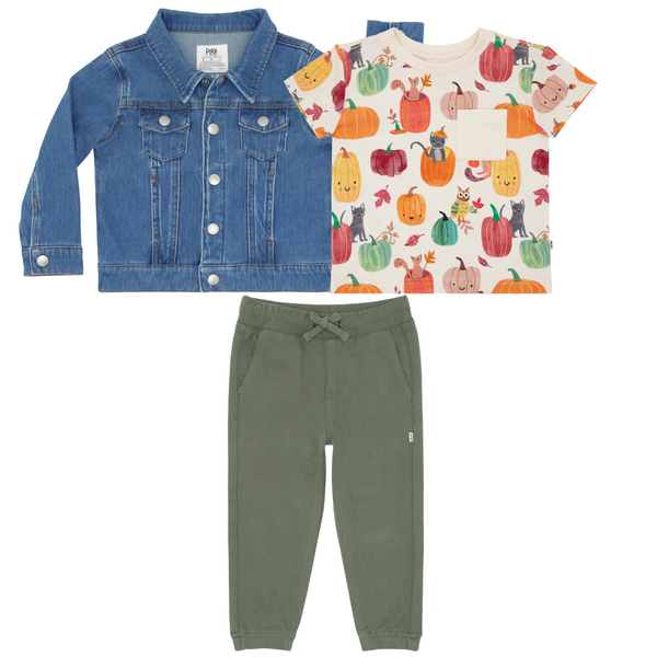 My son is obsessed with the pocket tees. We love this top because it incorporates fall themed items and can be worn all season long. The neutral background with the softer/toned down colors makes for the perfect fall print, and the little creatures are too cute!