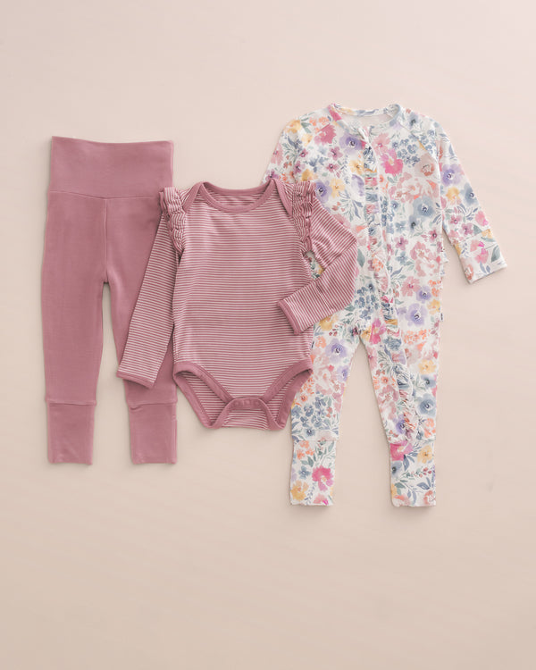 the comfiest choice for those first outings together. made from gentle Soluxe® Bamboo, with fold-over footcuffs for tiny toes and an elastic waistband that's soft on sensitive bellies. the sweetest prints and hues turn every moment into a memory.