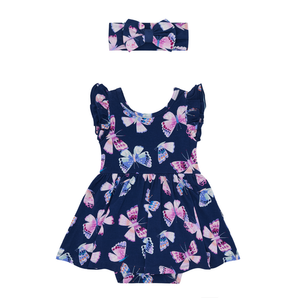 Royal Butterflies Flutter Twirl Dress with Bodysuit