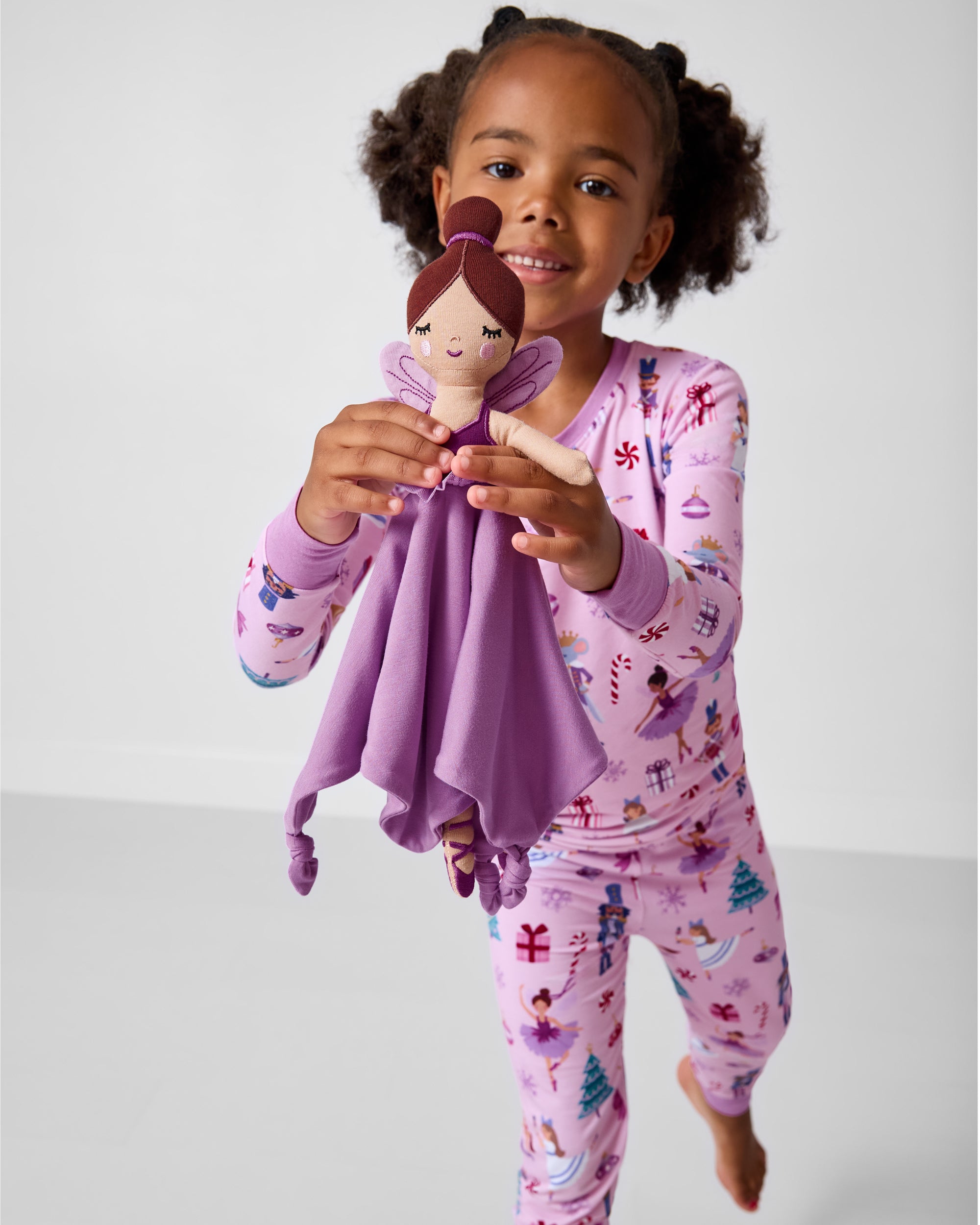 Perfect for your little ballerina! Marie the Sugarplum Fairy Sleepyhead Lovey brings the enchantment of The Nutcracker ballet with her graceful charm. Made from our signature custom-milled bamboo viscose, this Lovey for baby features the beloved fairy with her pink tutu, delicate wings, and baby-safe embroidered details, plus a matching security blanket.