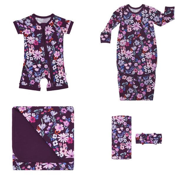 Make a wildflower wish! The Violet Meadow Shorty Zippy features fall florals in enchanting hues. Made from buttery soft Lunaluxe® Bamboo that's gentle on sensitive skin, this bamboo baby sleeper has an easy double zipper for quick changes. Grab the matching Cloud Blanket® for more meadow magic!