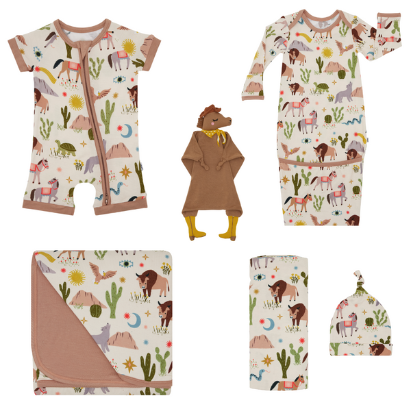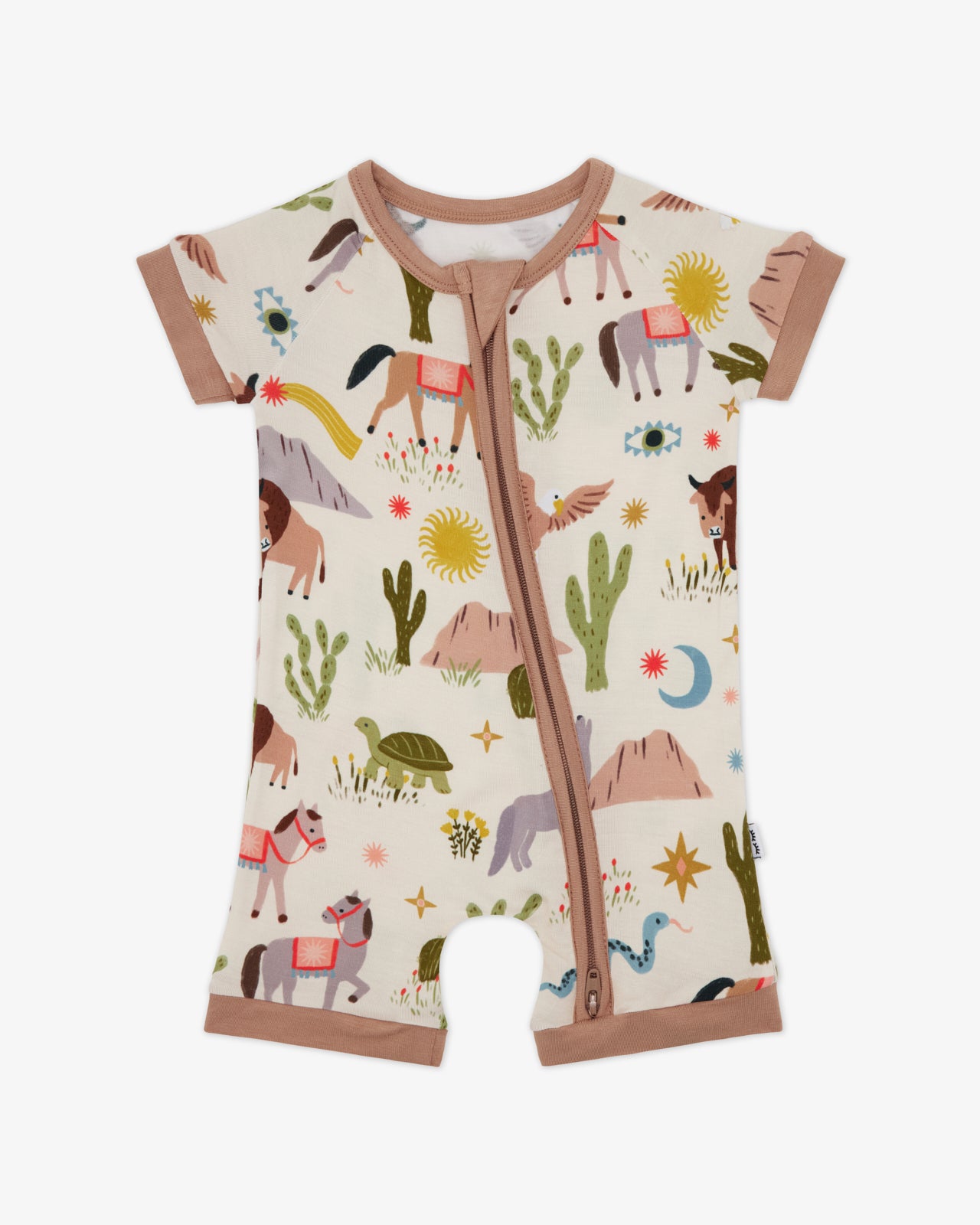 Saddle up for sweet dreams! The Wild Frontier Shorty Zippy features the cutest western wildlife and desert details your little partner will love. Made from buttery soft Lunaluxe® Bamboo that's gentle on sensitive skin, this bamboo baby sleeper has an easy double zipper for quick changes. Don’t forget a matching Crib Sheet for cute camo moments.